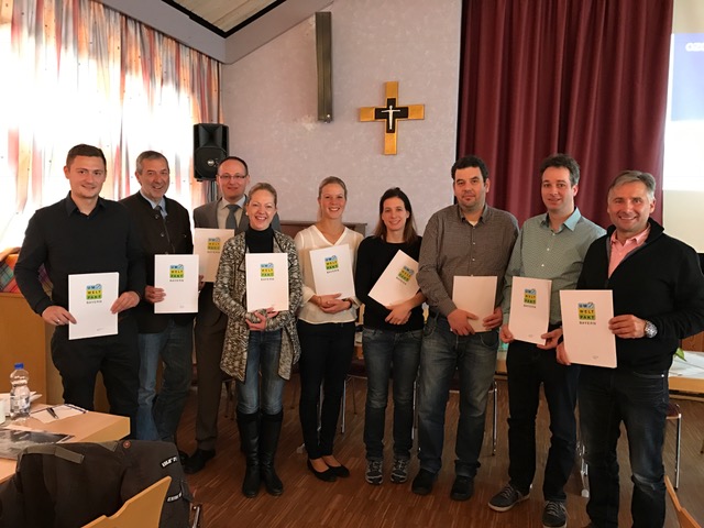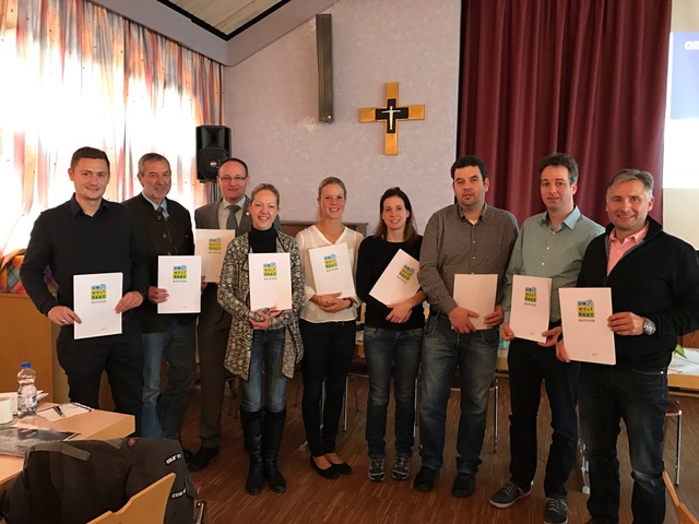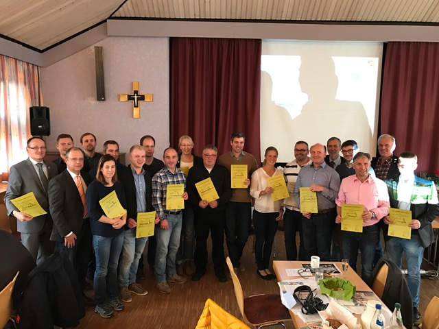 Kurz vor der Pause findet durch Herrn Peter Eiblmeier, von der Landesanstalt für Landwirtschaft in Weihenstephan und Herrn Dr. Josef Rampl, die Ehrung der Teilnehmer am DON-Vorerntemonitoring 2016 mit offizieller Übergabe der Teilnahmezertifikate statt. Das DON-Vorerntemonitoring 2016 wurde wieder von der Landesanstalt für Landwirtschaft, dem Bayerischen Müllerbund, dem Verband Deutscher Mühlen, dem Landhandelsverband, der BayWa AG sowie mit Unterstützung des Clusters Ernährung im Bayerischen Landwirtschaftsministerium und der LKP durchgeführt. Allen teilnehmenden Mühlen hier nochmals ein herzliches Dankeschön. Zudem werden alle Teilnehmer am Umweltpakt Bayern durch den Geschäftsführer des Bayerischen Müllerbundes, Herrn Dr. Josef Rampl, im Auftrag des Bayerischen Staatsministeriums für Umwelt und Verbraucherschutz mit einer Teilnahmeurkunde ausgezeichnet.