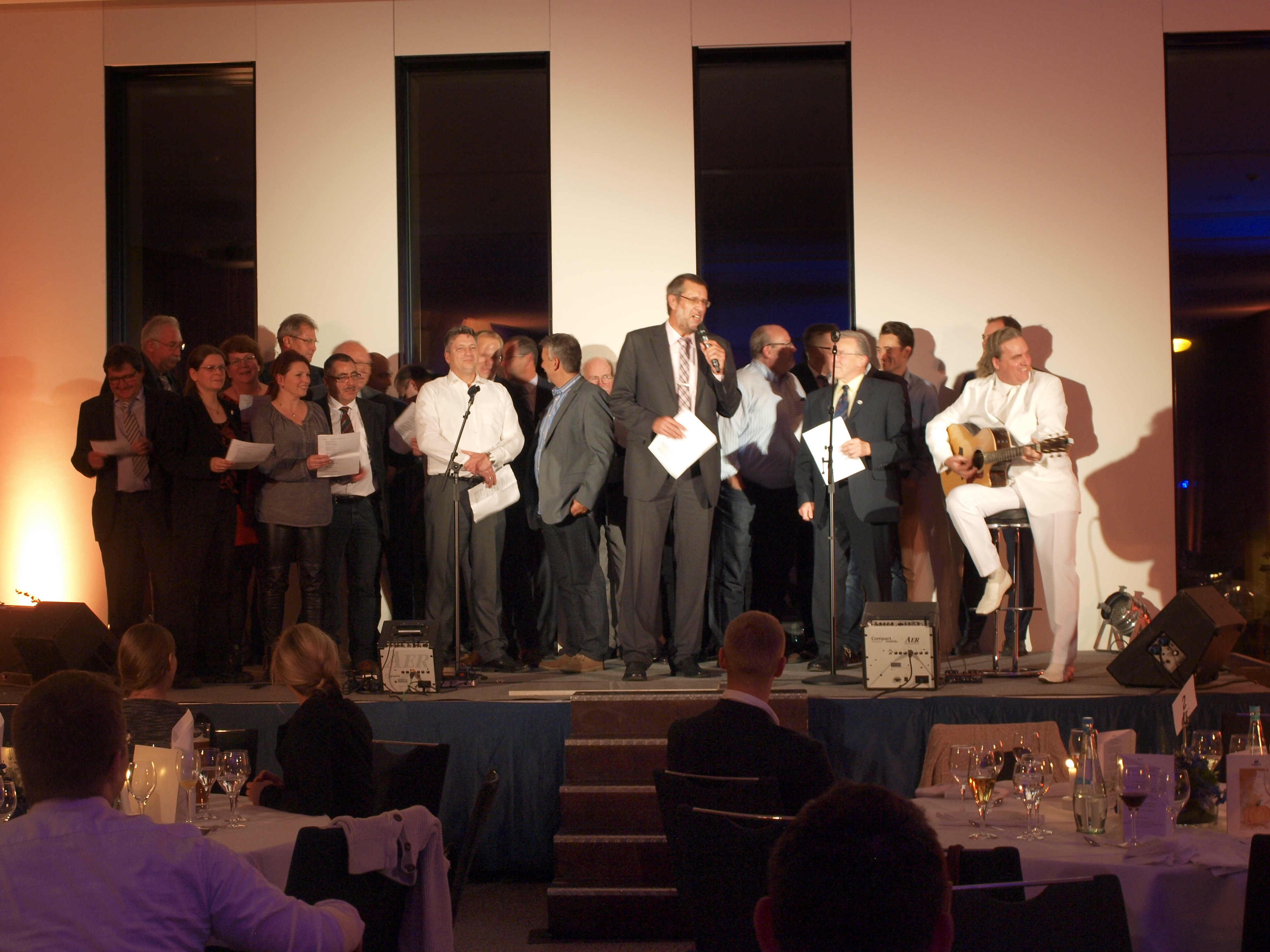 Für eine große Überraschung sorgten in diesem Jahr die Fachaussteller: Als Chor sangen sie ein Jubiläumsständchen auf die Volkacher Herbstfachtagung.