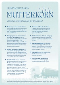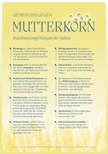 Der Bayerische Müllerbund hat in Zusammenarbeit mit der Bayerischen Landesanstalt für Landwirtschaft, dem Bayerischen Bauernverband, der BayWa AG, dem Genossenschaftsverband Bayern, dem Bayerischen Landhandelsverband, der Bayerischen Warenbörse und dem Max-Rubner-Institut bereits 2014 drei verschiedene Handzettel „Gemeinsam gegen Mutterkorn“ erarbeitet und verbreitet.