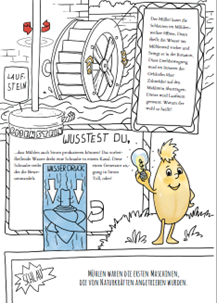 Das liebevoll gestaltete Buch nimmt Kinder mit auf eine abwechslungsreiche und spannende Entdeckungsreise: Mit den Figuren Basti und Korni geht es Schritt für Schritt entlang des Weges eines Getreidekorns – vom Acker über die Mühle bis in die Backstube. Dabei erfahren die jungen Leserinnen und Leser anschaulich, wie das Getreide wächst, geerntet und schließlich in der Mühle zu Mehl verarbeitet wird. Tradition, Landwirtschaft, Technik und Ernährung werden auf einfache, kindgerechte Weise erklärt. Auch die Wasserkraft spielt dabei eine wichtige Rolle – so lernen Kinder früh, wie wichtig diese Form der Energieerzeugung ist und welche Bedeutung sie bis heute für Mühlen hat.
