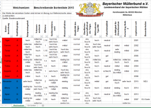 Um einen Überblick über das Sortenspektrum mit allen wichtigen müllerischen Parametern zu verschaffen, hat der Bayerische Müllerbund die Bundessortenliste entsprechend in eine übersichtliche Tabelle gefasst, die sortiert werden kann. In der Tabelle werden die wichtigsten müllerischen Qualitätsparameter in Worte beschrieben und die Effizienz jeder Sorte in Zahlen ausgedrückt. Zudem lässt sich die Tabelle nach unterschiedlichen Aspekten sortieren.